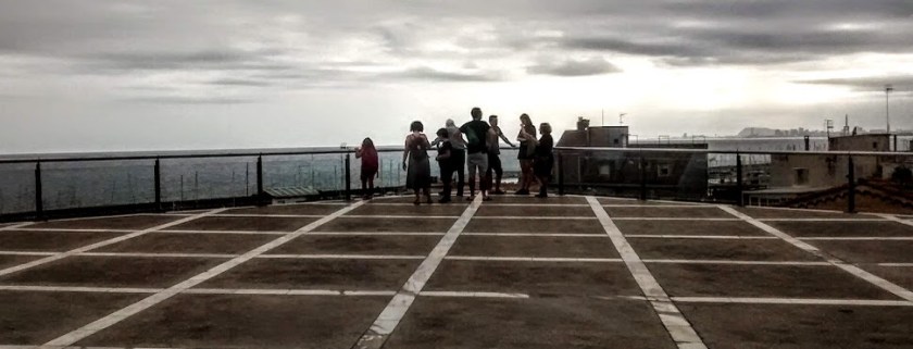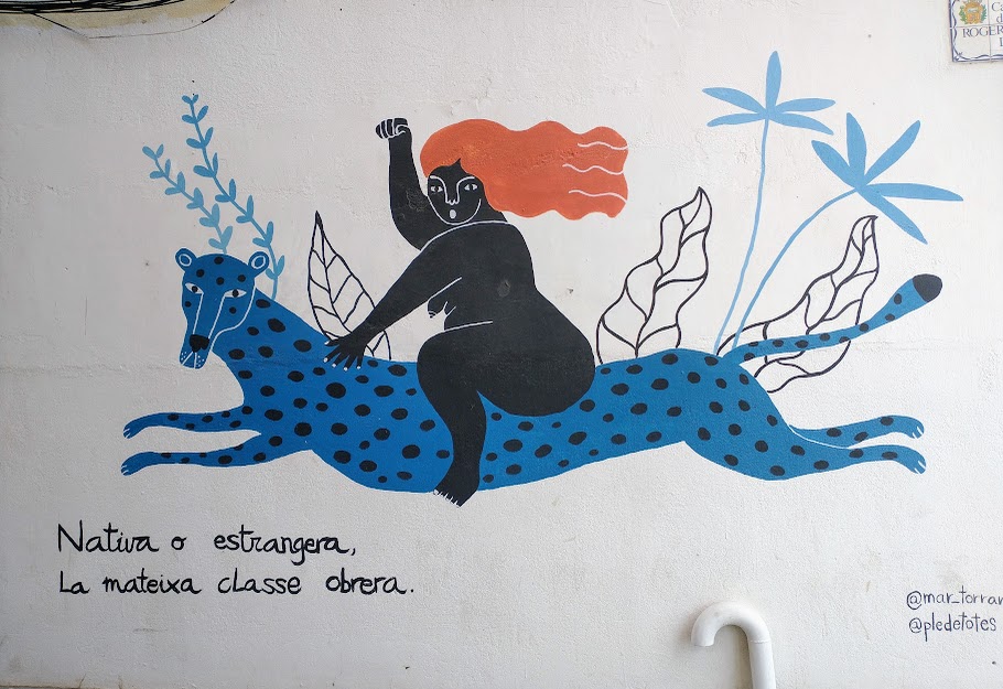 … before finishing up in a square outside the church shown above, looking out at the Mediterranean, with Barcelona on the skyline at the right. And with an image of the winter, summer, autumn and winter painted on one of the walls.