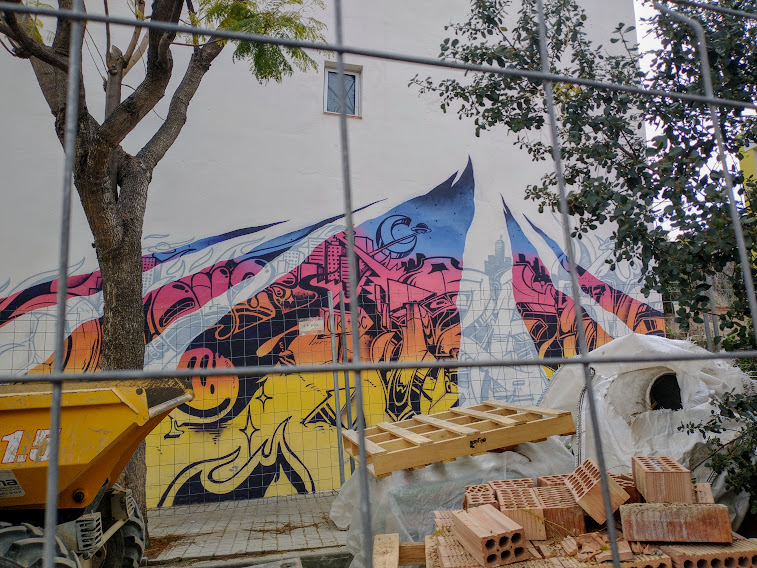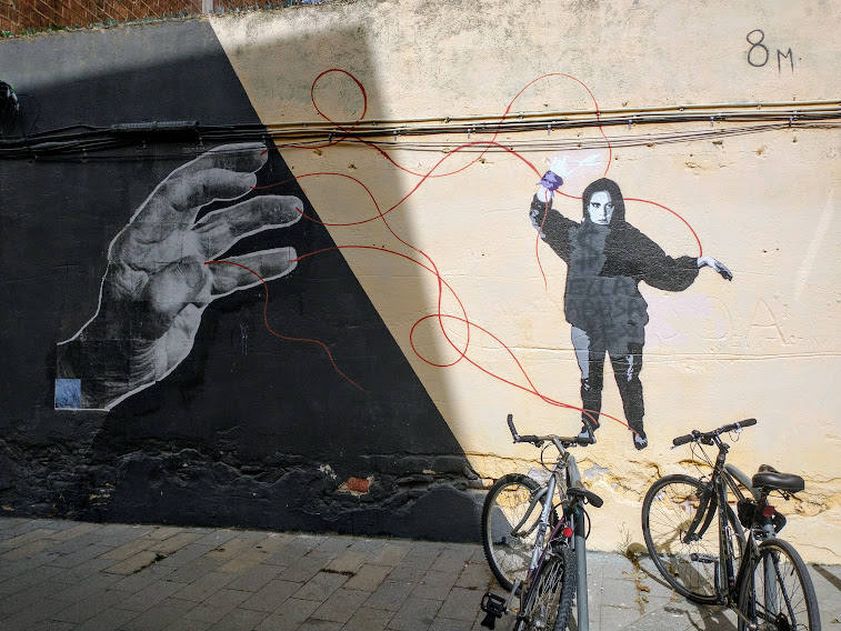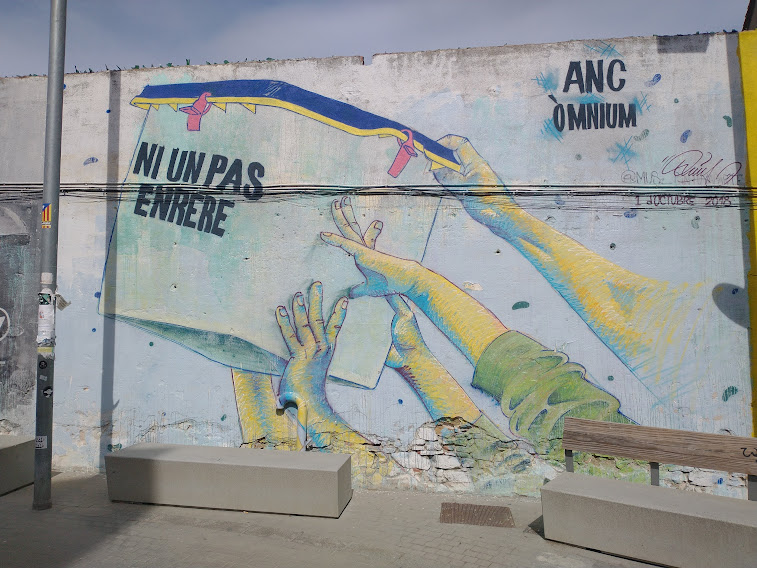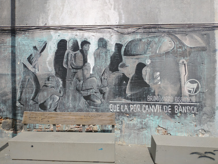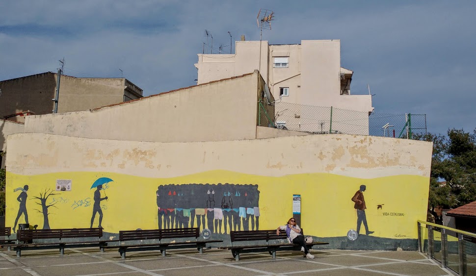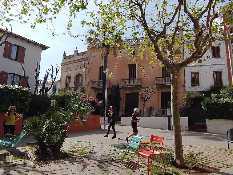 The town just before our daughter-and-family’s is El Masnou, and we recently enjoyed a stroll around after a long lazy lunch there. Old and new, high-rise and low rise all live together in a congenial hotch-potch. There’s a harbour, as shown in the feature photo, and pleasant squares with Modernista villas once built for sea-captains.