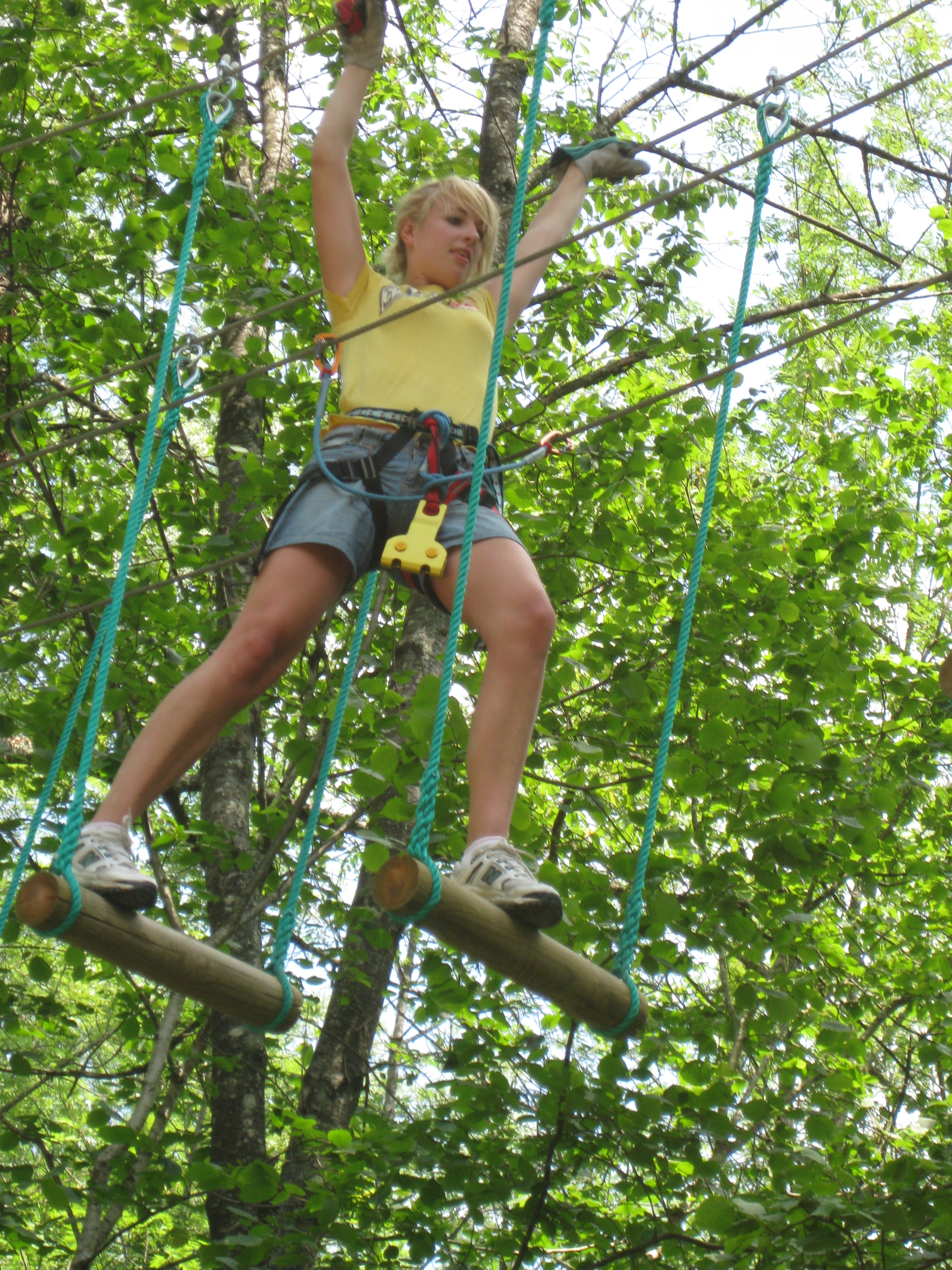 Or the longest zip wire of all, so much higher than the others, which sent them screaming through the trees, across a river, through more quite dense forest, before they disappeared from view. They came back into view as they returned across the river via precarious rope bridges and swinging platforms