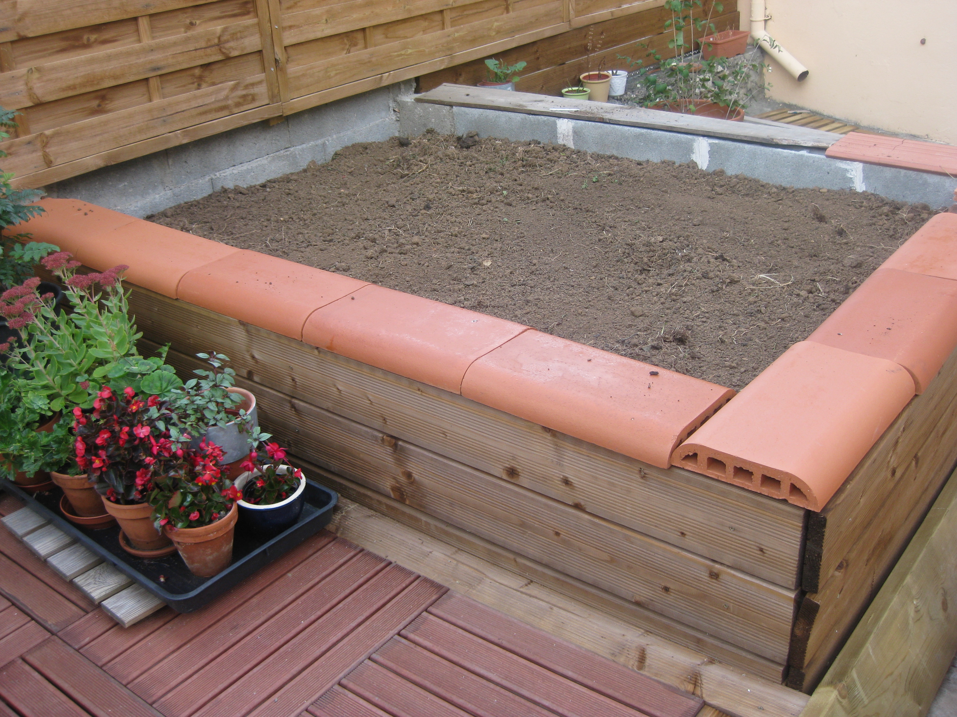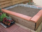 That new bed for herbs that we’ve built in the courtyard has been a bit of a problem. I couldn’t lay my hands on any top soil to fill it. Then at last, I was in the right place at the right time. Mireille’s neighbour offered her some. She didn’t want it, but I did, and yesterday, the laden car made two trips down from their out-of-the-way hamlet, la Couronne, stuffed with a dozen or more tubs of rich crumbly red earth.
