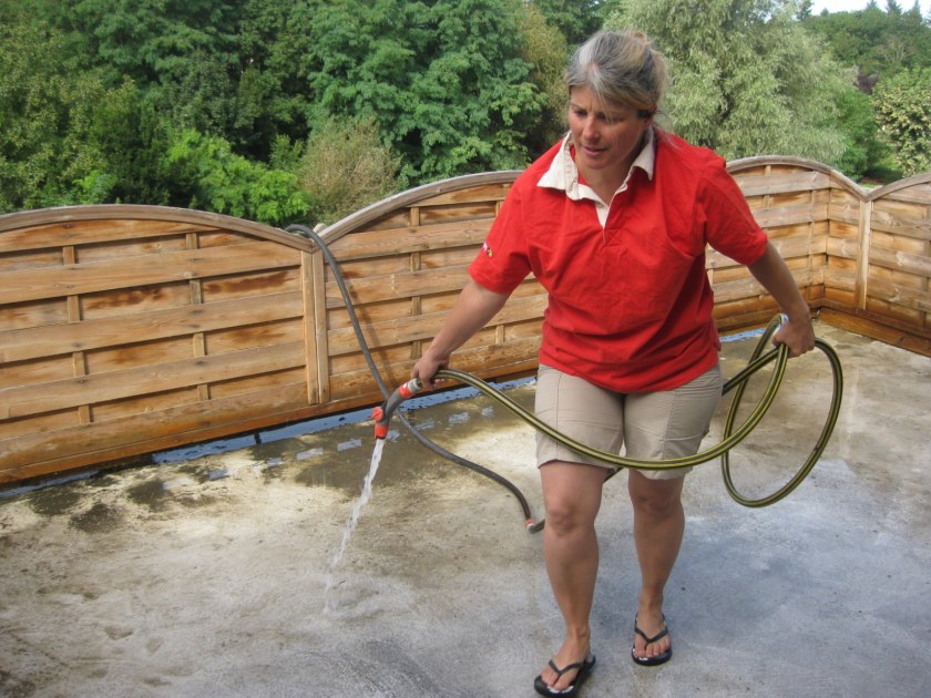 Cleaning the terrace on day 1