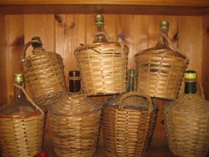 Now then, I’ve just found some of those old raffia covered wine bottles lurking in the atelier. I think those can go out next.