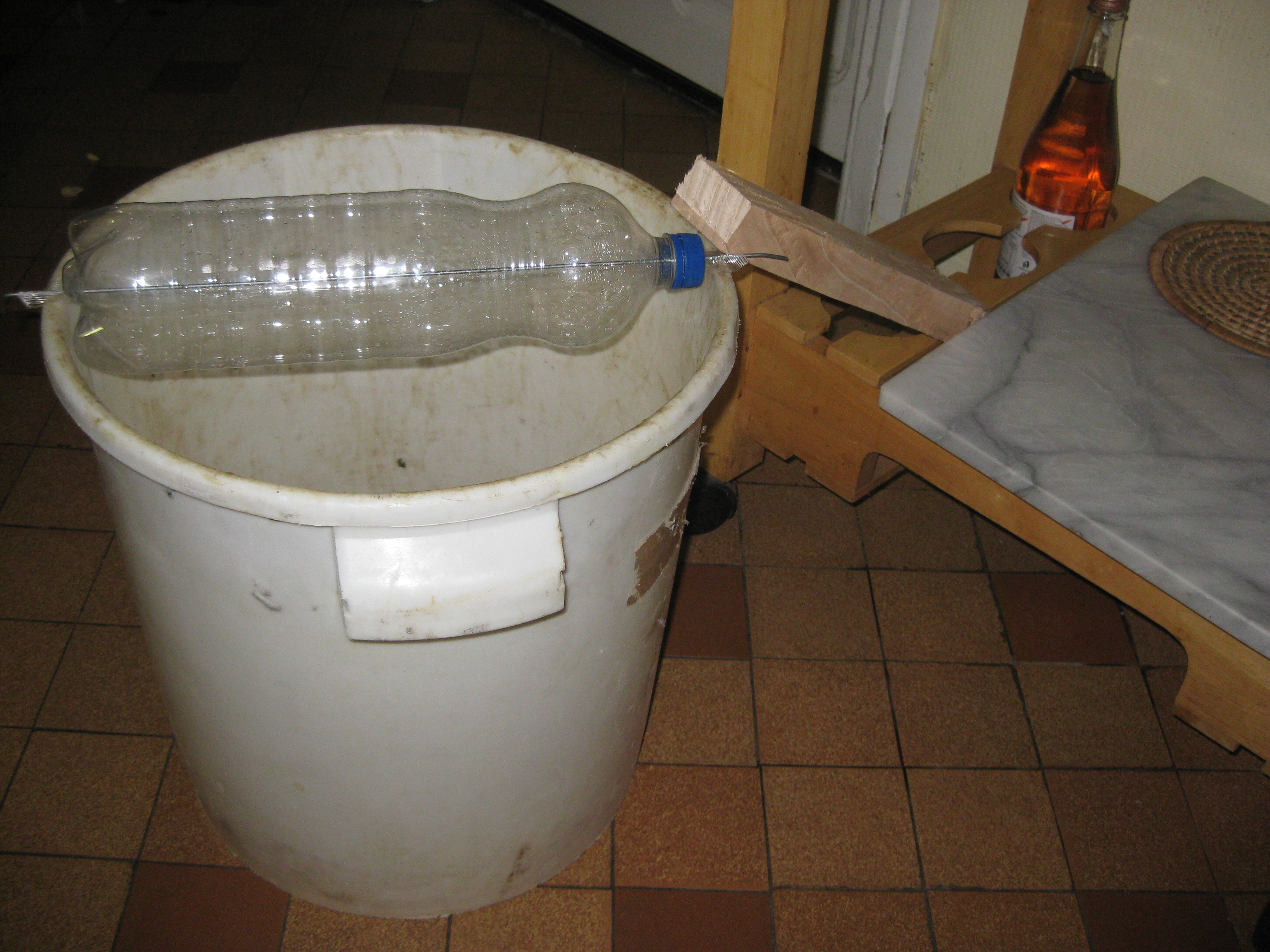Mal spent long hours on the net, watching excruciating amateur videos about making humane traps. He picked out some of the ideas involving tubes, bait and deep buckets and set to. Each night we left collections of baited tubes, unset, over the surfaces Mr. Mouse seemed to use, till one night, we set the trap. Mr Mouse was to scuttle down the baited tube in quest of peanut butter and fall from the work surface into the deep bucket on the floor. Theoretically.