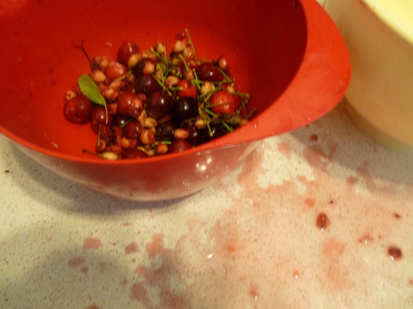Previous Image Next Image P1040193 Messy cherries. That’s the kitchen after a sorting and stoning session.