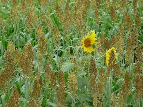 Sunflowers among the sorghum.