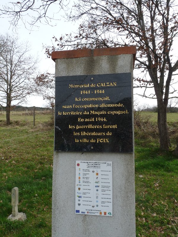 Previous Image Next Image P1110291 This monument at Calzan commemorates the activities of the Maquis in the area, particularly their involvement in the liberation of Foix in 1944.