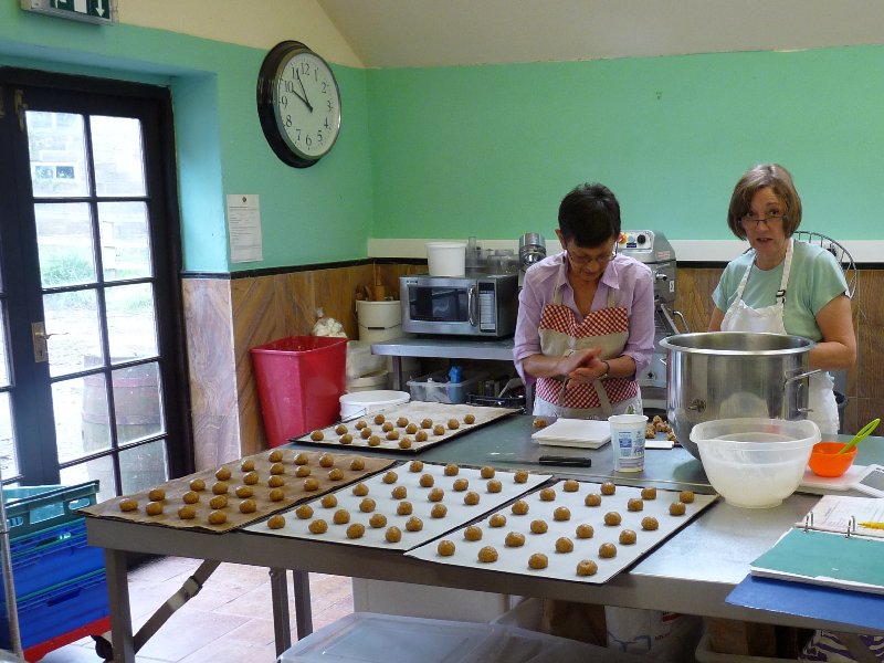 Two Margarets make Anzac biscuits.