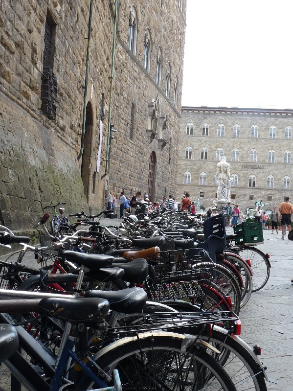 The ubiquitous push-bikes: all parked up on Piazza della Signoria