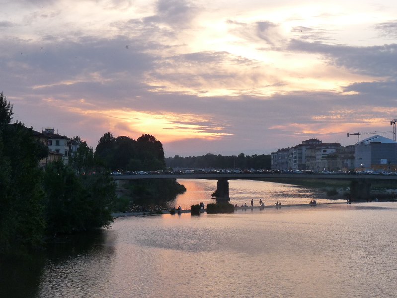 Young people at dusk on the Arno.