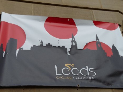 Leeds celebrates the Tour de France with a series of cheerful banners.