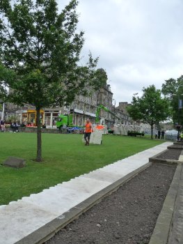 Decking and emptied flower beds await the crowds.