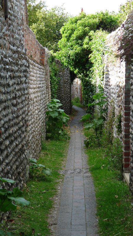 A narrow pathway in Cley-next-the-sea.