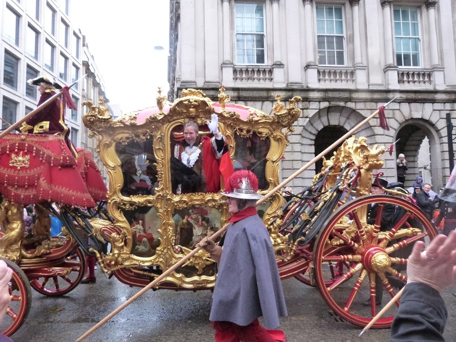 Next Image Lord Mayor’s coach The new Lord Mayor bravely sticks his head out into the pouring rain to wave at the crowds.