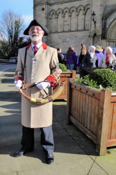 Previous Image Next Image shrovetuesday-ripon-004 The Ripon Hornblower keeps a friendly eye on the proceedings.