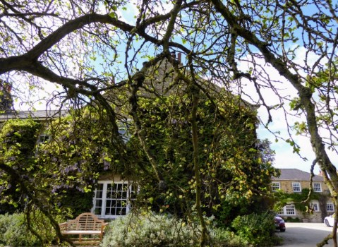 Previous Image Next Image zOG3 The Old Grange, complete with modern trimmings such as wisteria and climbing roses, glimpsed through the branches of the productive mulberry tree.