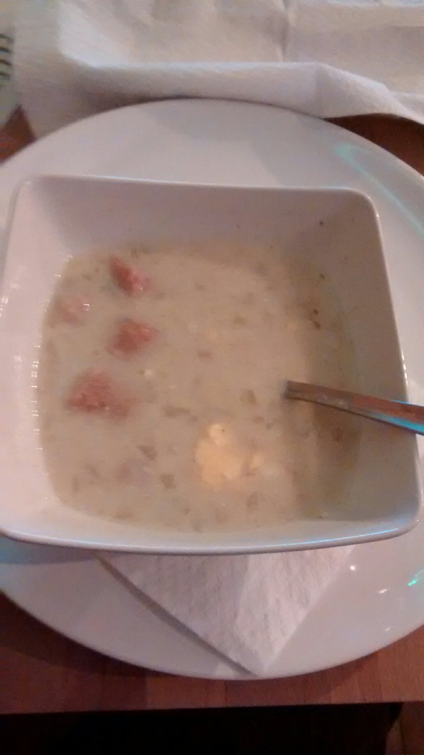 Rain threatened all day, and when it finally came, we knew about it. Deluge. We needed comfort food. This is what I chose at lunchtime: zureck. It tasted slightly sour, slightly fermented. I loved it.