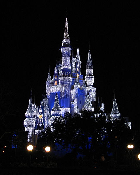 Previous Image 480px-Cinderella_Castle_with_holiday_lights Cinderella Castle in Walt Disney World, Christmas 2007: Benjamin D Esham.