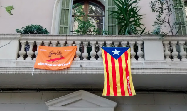 Previous Image IMG_20171126_110322709 A plea for independence alongside the Catalan flag. A common sight all over Barcelona – and Catalonia generally.