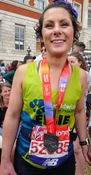 and could that hand she is holding be the one that gave her some encouragement to run? What a fabulous smile and so richly deserved. Mighty fine effort Ellie and all the support team, fast and slow. You must be brimming with pride at her achievement. Raising over £6,000 in memory of Phil The Gap – how proud he would be of his wife.