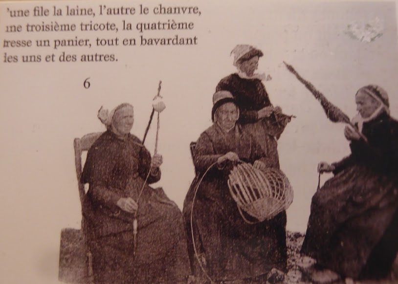 Previous Image Next Image P1160451 One woman’s spinning wool, another flax; another one is knitting, and the fourth is basket making. Even whilst having a natter, the work must go on.