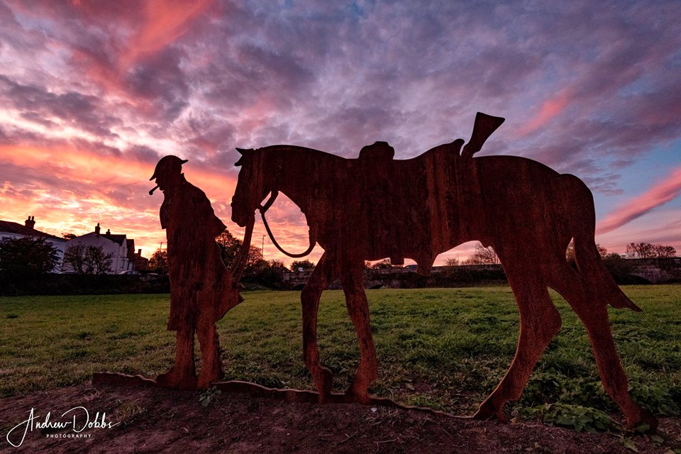 Next Image 44745982_10156818595654711_8103547077784502272_n Fred and Old Bones trudging home near North Bridge, Ripon. The soldier’s pipe is turned upside down to keep his baccy dry during the inevitable rain. This brilliant image was captured at sunset by Andrew Dobbs. (https://www.andrewdobbs.photo/)