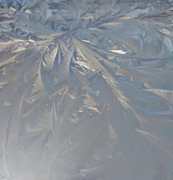 I remember Jack Frost too. He had spent the early hours of the day sketching dizzyingly complex and beautiful patterns in luminous white on the inside of my bedroom window. It’s rare to see these intricate motifs on house windows these days. But the other day, arriving early in town, I passed a car park full of vehicles exhibiting examples of his artistry. I had to take a shot or two.