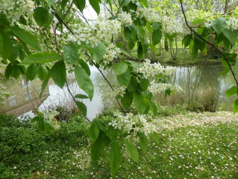 Cherry blossom near the pond at North Stainley.