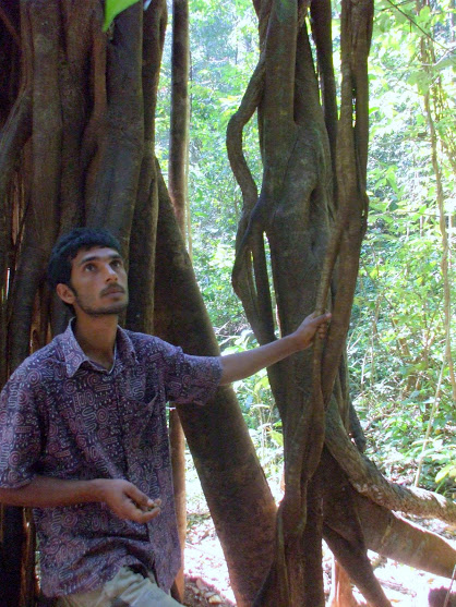 Previous Image Next Image Sandy plans his climb of the strangler fig Sandy plans his climb of the strangler fig
