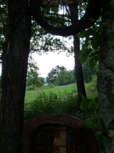View past a woven sculpture.