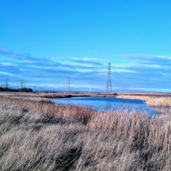 Previous Image Next Image IMG_20200121_142912217 Light-providing pylons stride purposefully across the landscape behind the reserve.