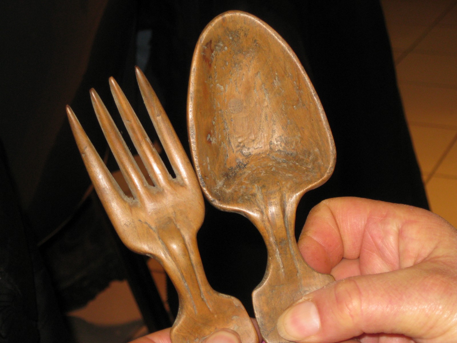 Previous Image paulgarriguesldojan12-015 Wooden fork and spoon. A good strong shape. The short handles ensure a long and useful life.