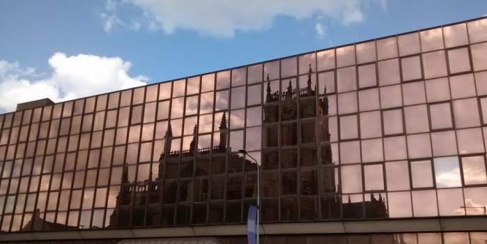 Previous Image Next Image IMG_20180510_165745051 Hull Minster, reflected in a nearby office building.