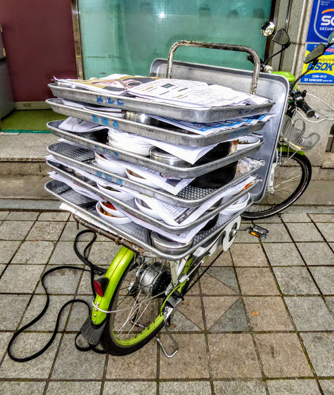 Previous Image Next Image SouthKorea2016 027 I chose this bicycle from Seoul, South Korea, loaded up with lunch time meals, cooked in tiny kitchens, and delivered to workers on site.