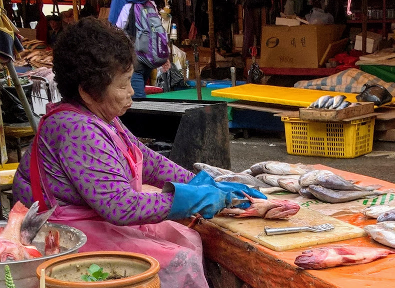 Previous Image Next Image WP_20160922_11_55_08_Pro_LI A woman filleting fish at Jagalchi Market, Busan, South Korea – perhaps the largest fish market in the world.