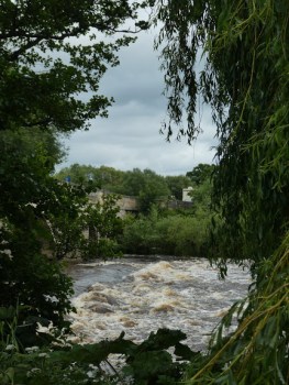 The River Ure in spate at Bridge Hewick near Ripon.