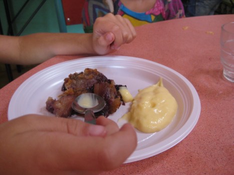 ,,, and apple betty with custard.