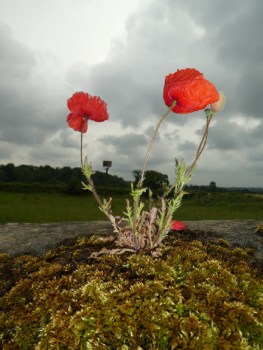 Poppies sneak a prime spot on the bridge at West Tanfield.