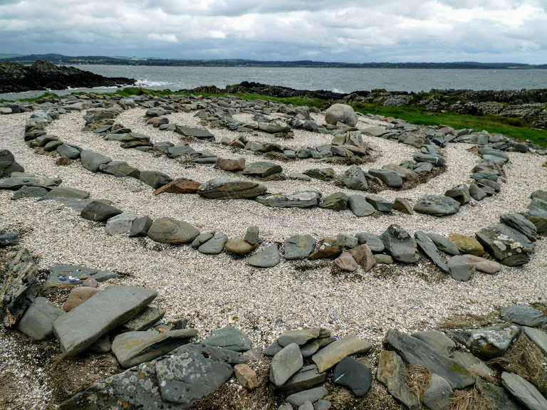 Previous Image Next Image P1090010 This seemingly ancient labyrinth was constructed in 1990 on a small island that develops every time the tide comes into Mossyard Bay.