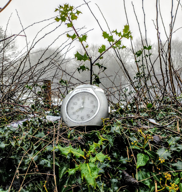 And why is there a clock on a hedge in a country lane? Perhaps Alice in Wonderland’s White Rabbit knows?