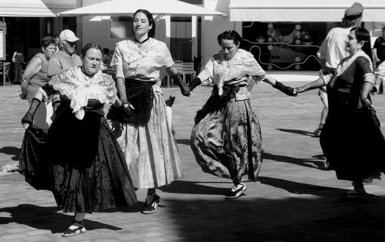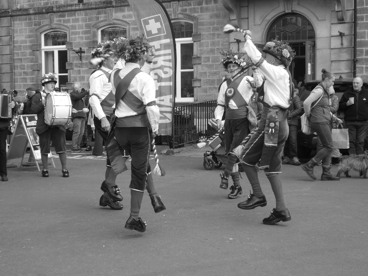 Here are some dancers in neighbourhood festivals: in Catalonia; and in England – Morris Men.