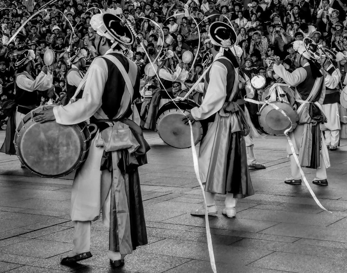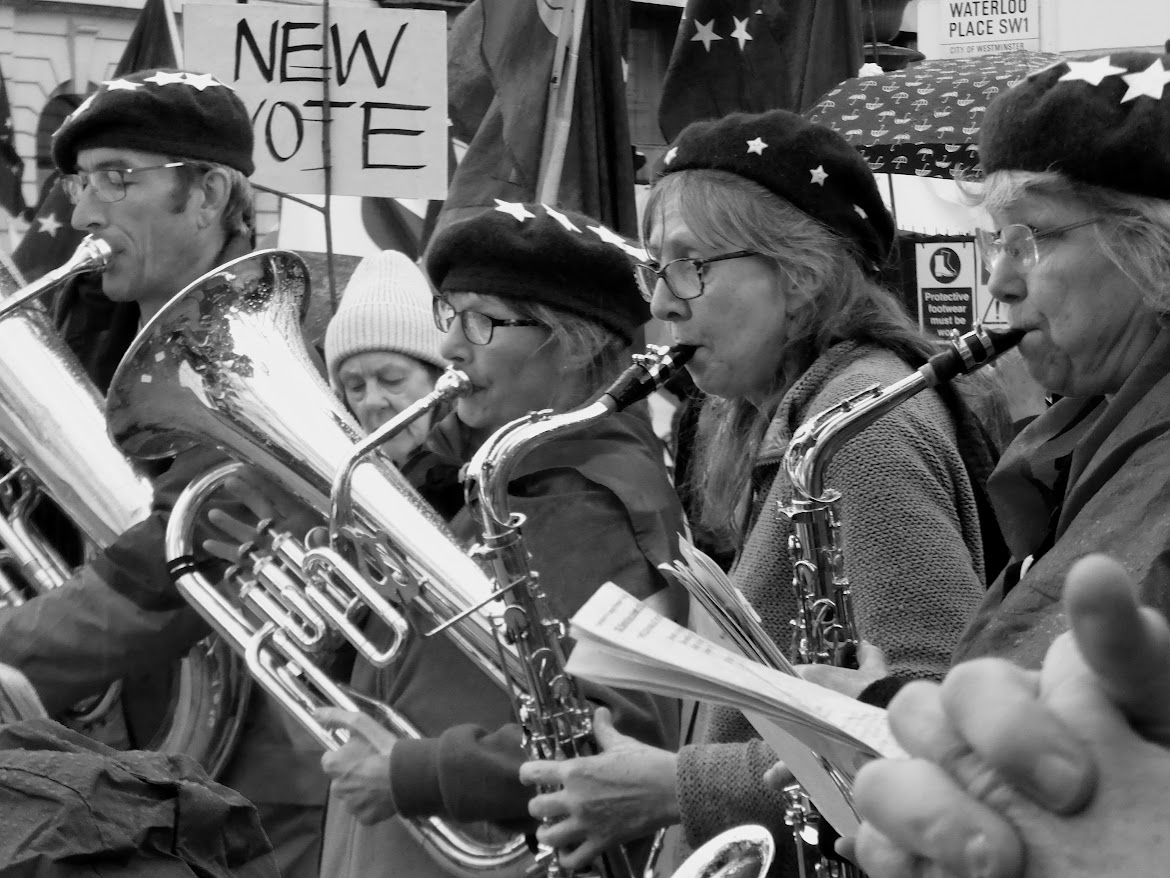 Instrument players now. The drummer accompanying the Morris dancers; drummers celebrating Chusak in South Korea, and brass players marching in London in those heady optimistic days when some of us still thought Brexit might not happen.