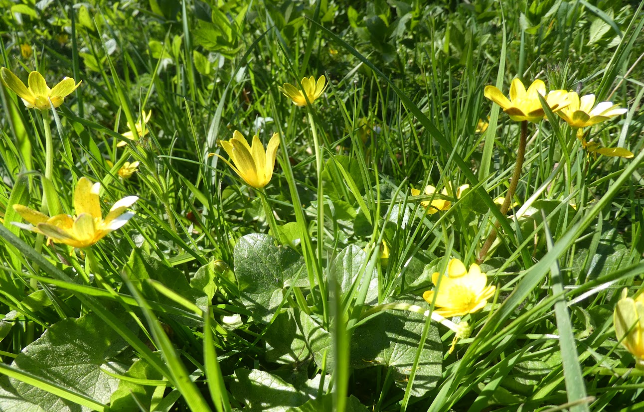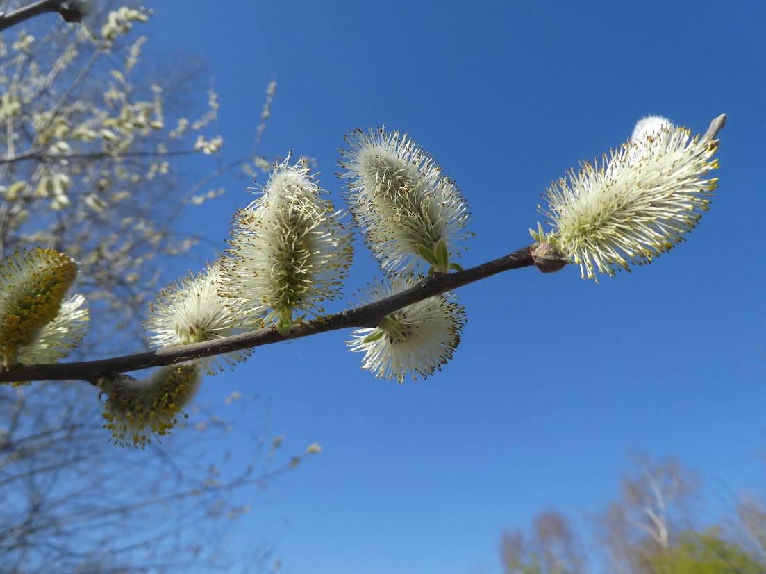 Primroses, celandines, willow catkins dusted with yellow pollen, blackthorn blossom.