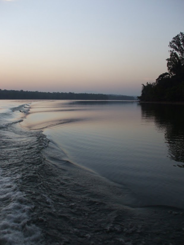 Not so many animals though. An elephant silhouette distantly glimpsed drinking on the shore, some wild boar, spotted deer, and positively no crocodiles, as virtually promised. Coming home, a truly wonderful sunset.