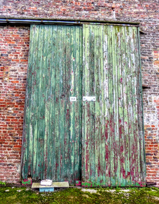 Rectangular: lots of rectangles here, from bricks to planks to the battered doors themselves – afarm door near Staveley, North Yorkshire.