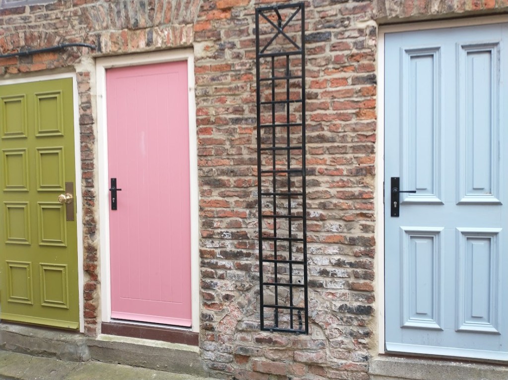 Last on the phone, actually. Taken in a little backwater in Darlington, a town not too far from us that we’d never visited. I wish I could have stepped further back in this narrow alley. Then I’d have snapped four differently-coloured doors.