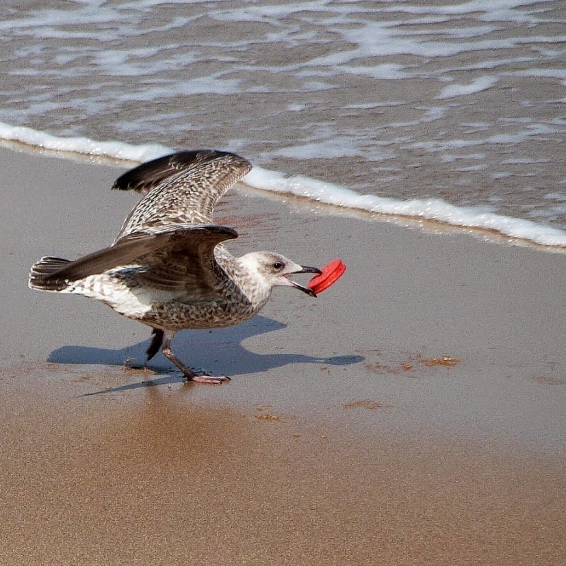 And next, a young herring gull. I hope he really is tidying the beach, and not regarding that plastic bottle top as his next meal.
