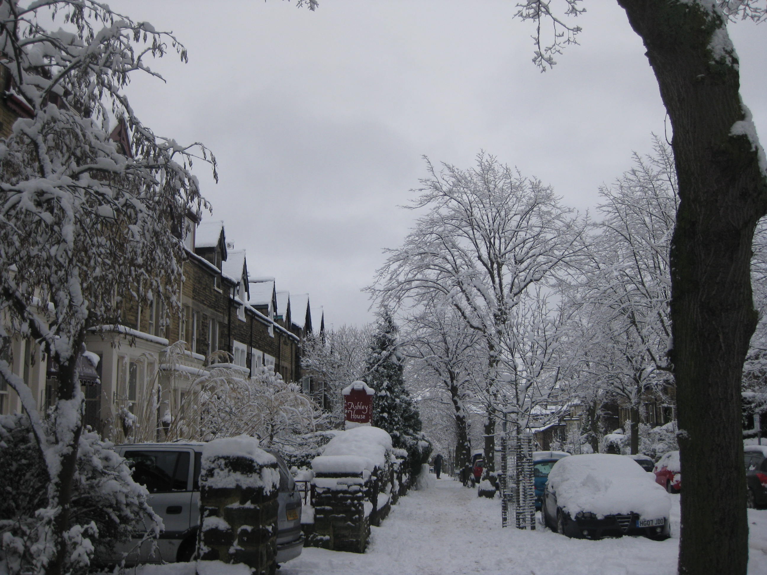 So here are some pictures of life in cold and snowy Harrogate. Emily and I even made a mini snowman. He’s mini because making him was like trying to model something in very cold granulated sugar. The snow wouldn’t stick together. We had fun trying though, and though he was very small, he was a little monster’