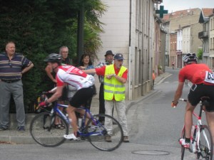 With nothing but their batons and booming voices to help them, l’Ariégeoise marshals tried to sort the sheep from the goats and send everyone on the correct path. But it was hopeless. More and more cyclists went wrong, and the area round the bridge became a clutter of wheeling tumbling bikes and their confused riders. Some of them were amused. Others not. ‘Merde!’, ‘putain!’ and worse coloured the air as they saw their hard-won average speeds taking a turn for the worse.