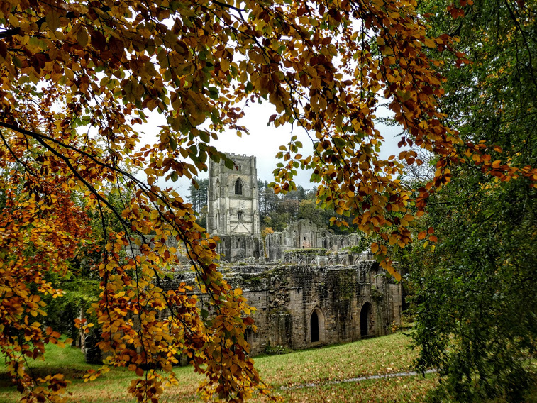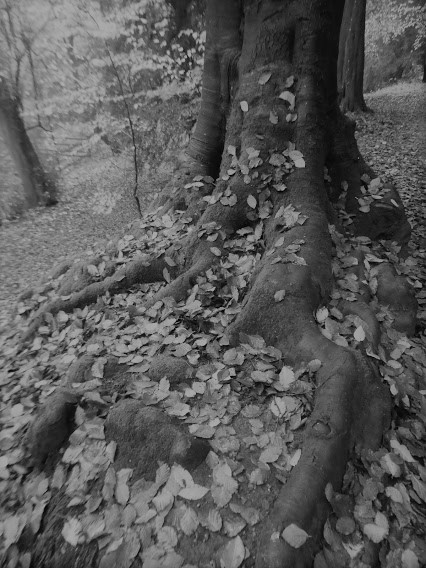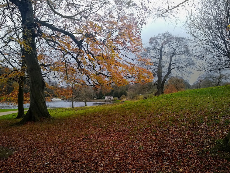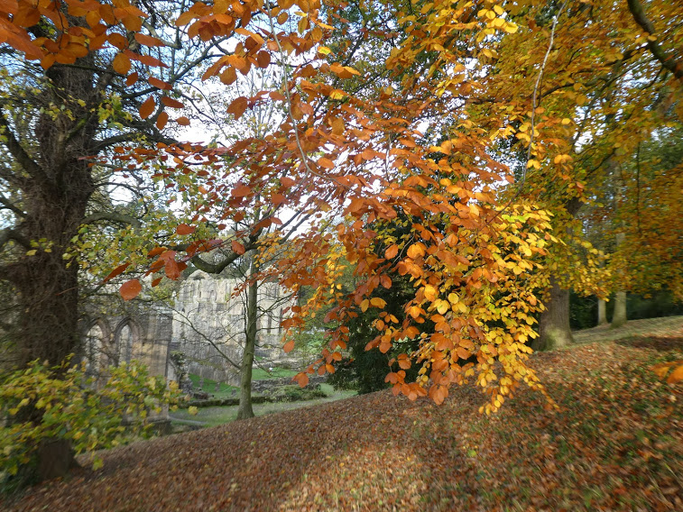 … and move on to a couple more autumnal scenes from Fountains Abbey and Studley Royal; a fish – part of a wall decoration at the Natural History Museum, London; tree bark: and our logs all stacked up for winter. Click on any photo for a close-up.