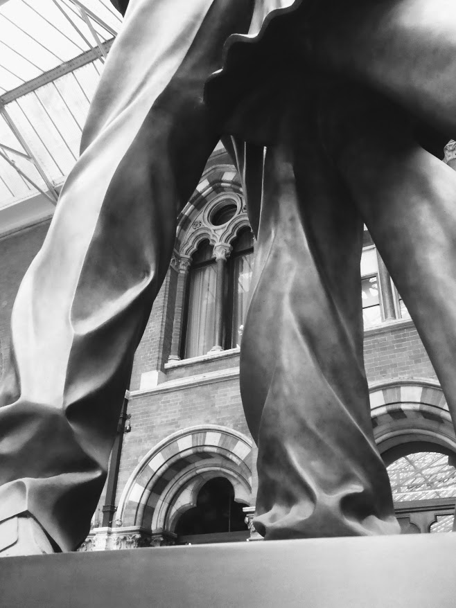 This time, we had a little time to mooch round St. Pancras, and I’ll share some photos another time. But today, for Patti’s Lens-Artists Challenge, I’m going to focus on the statue that I love to hate, and that greets us as we enter the station. It’s Paul Day’s The Meeting Place , and it’s been here since 2007. The design brief at the time asked for a statue that would ‘capture the spirit of romance once associated with train travel‘ and ‘be iconic like the Statue of Liberty‘. Two young lovers, one a soldier, exchange a farewell embrace. I find it cloying and sentimental: something to do with the monumental size of this essentally private moment offends me. And as for being iconic. Imagine replacing, for example, Michelangelo’s David, or indeed the Statue of Liberty with this statue. I think not. I know this is a minority opinion, so I was delighted to find this article from the Guardian, published in November 2007.